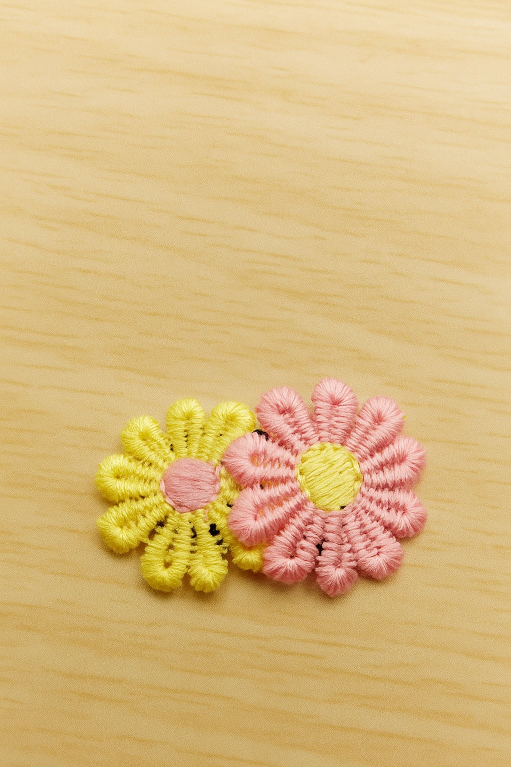 Aan de zicht zijde zitten 2 stoffen bloemmetjes. Aan de onderzijde zit een 3,2 cm antislip Haarklemmetje.Deze klik je open , schuif je in de haren en vervolgens klik je hem dicht, Door het rubber laagje klemt hij zich stevig vast. De stof is vast gemaakt met textiel lijm deze kan goed tegen water en vocht.