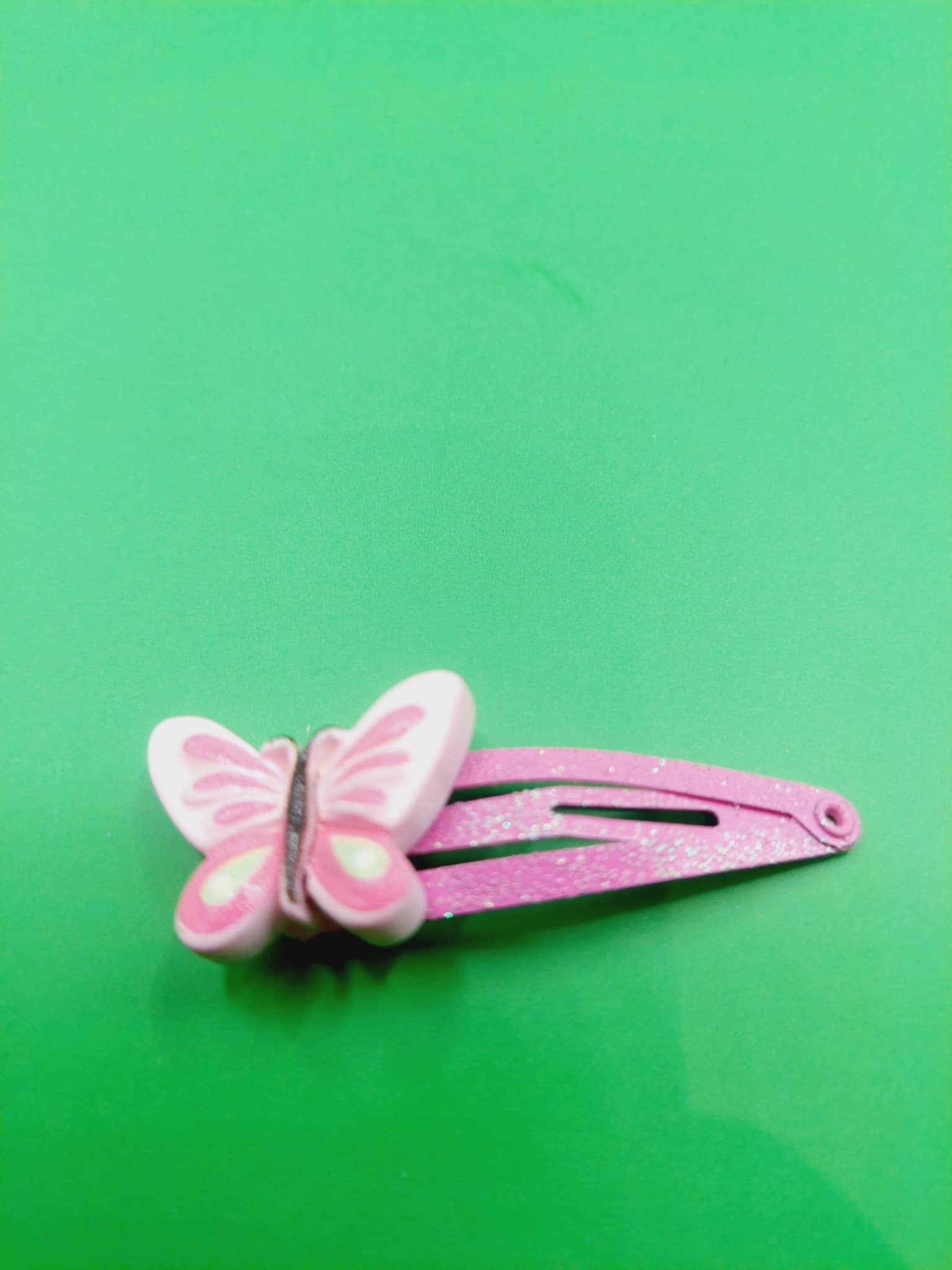 Een gekleurde haarclip met glitter met een hars figuur