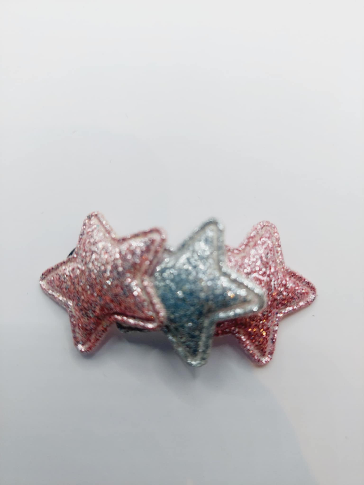 Een zilver kleurig haarclip van 4 cm met een stoffen sterren