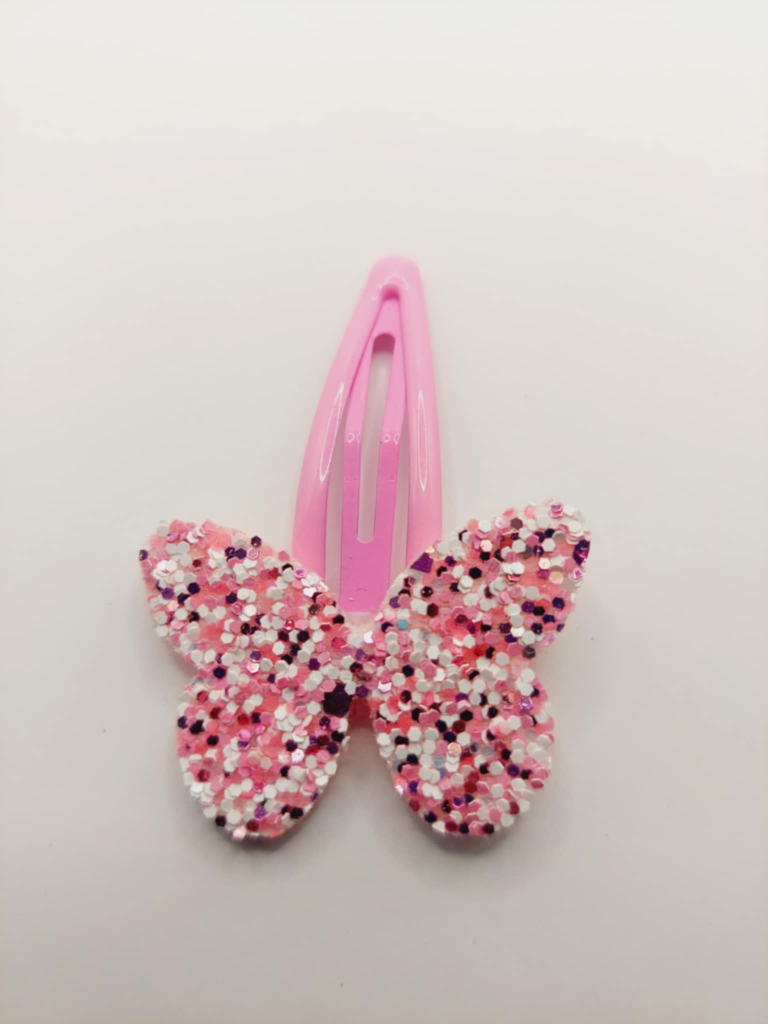 Om het clipje zit een coating deze zorgt ervoor dat het niet zo scherp is. En het vlindertje is gemaakt van vilt.