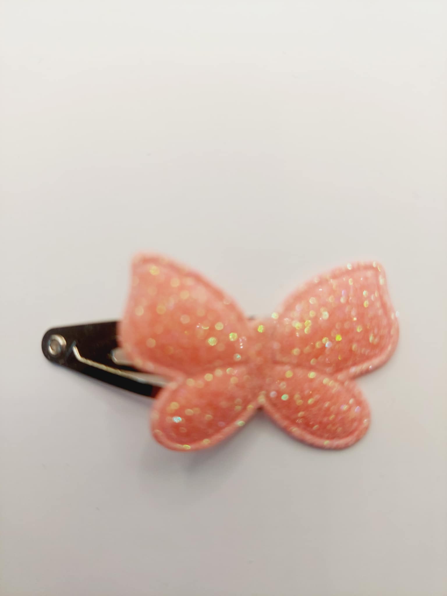 Een zilver kleurig haarclip van 3 cm met een stoffen vlinder