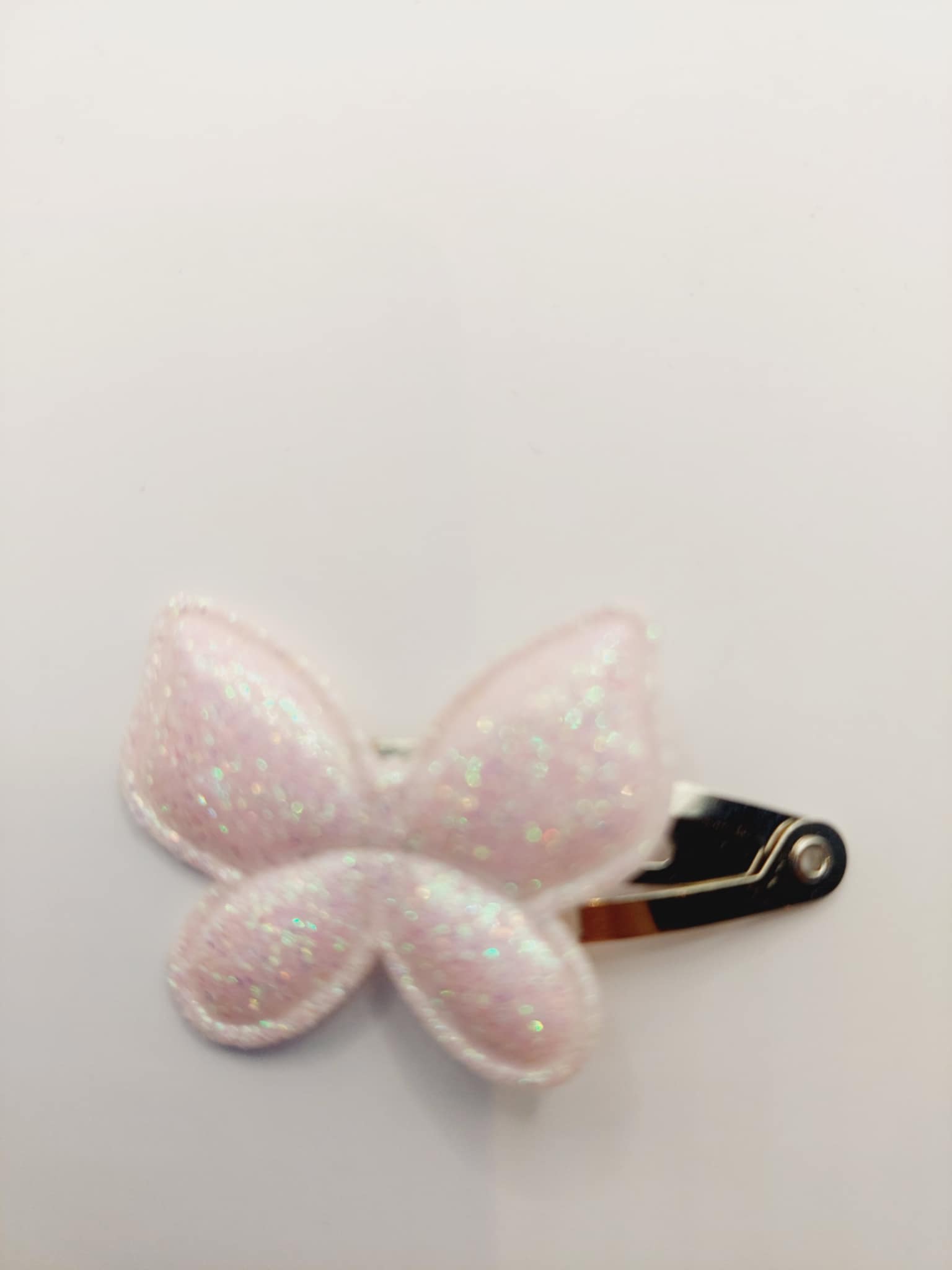 Een zilver kleurig haarclip van 3 cm met een stoffen vlinder