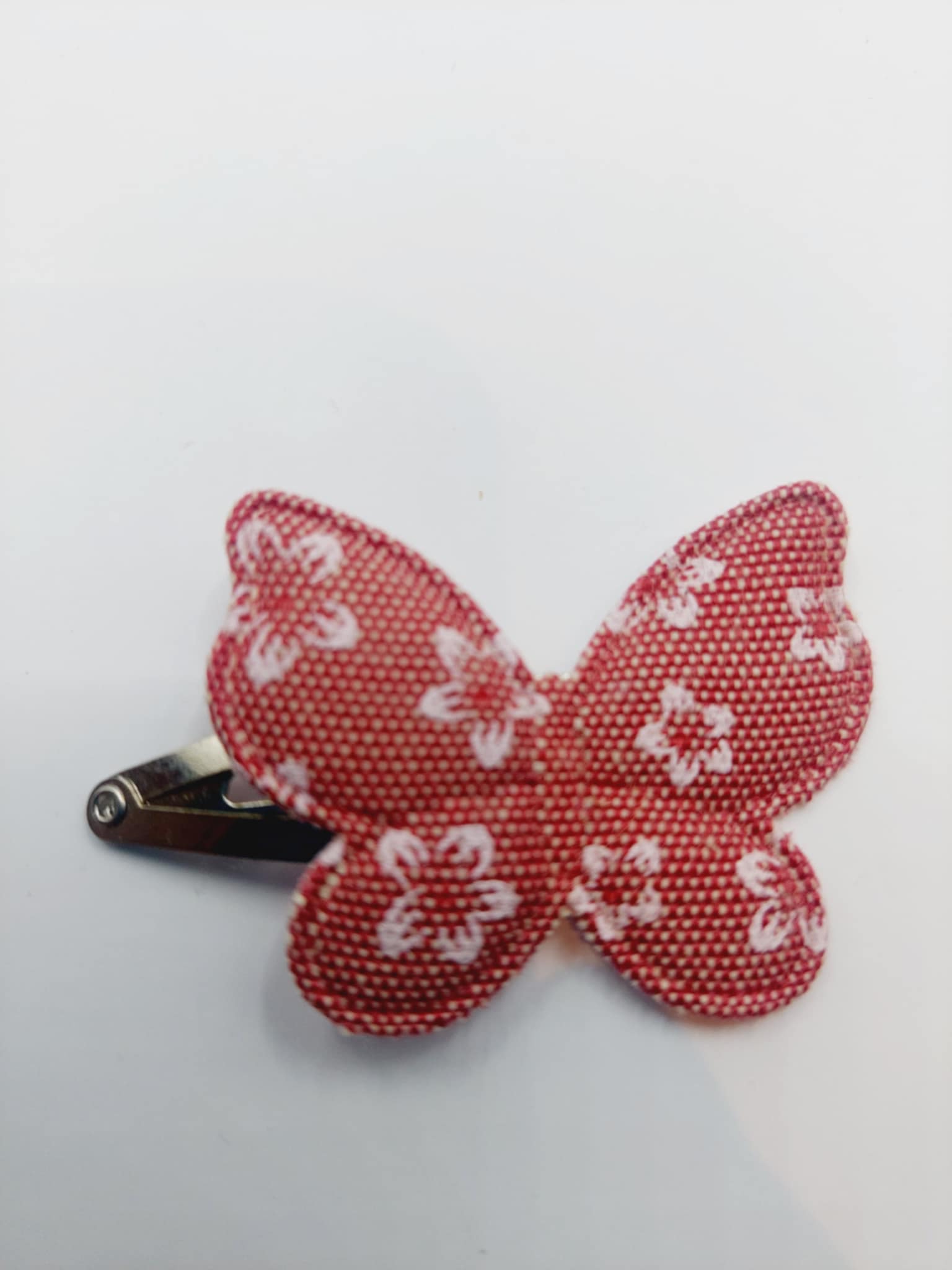 Haarclip van 4 cm met een rood vlinder met bloemmetjes opdruk