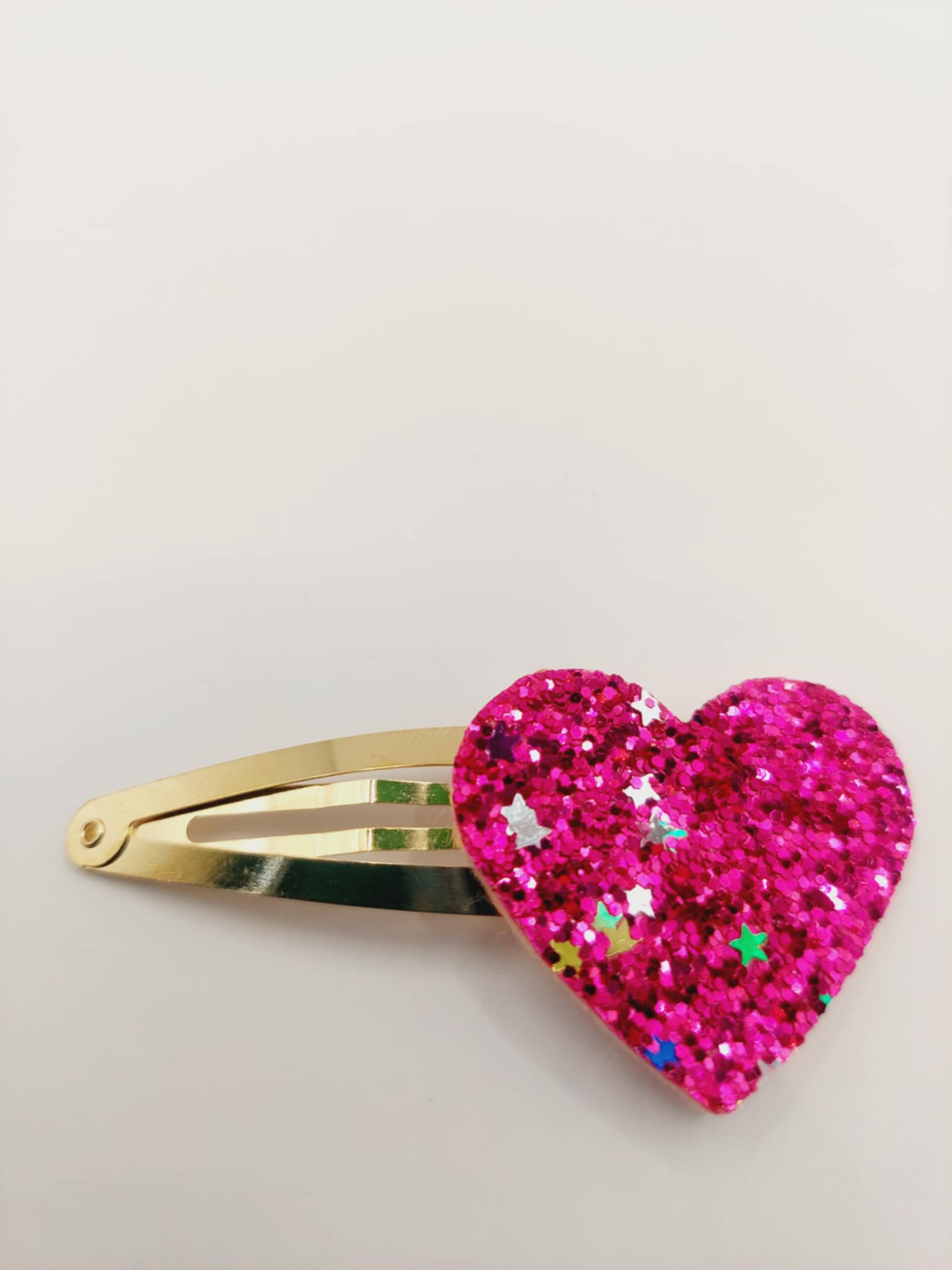 Een goud kleurige haarclip van 5 cm. Het hartje is van vilt