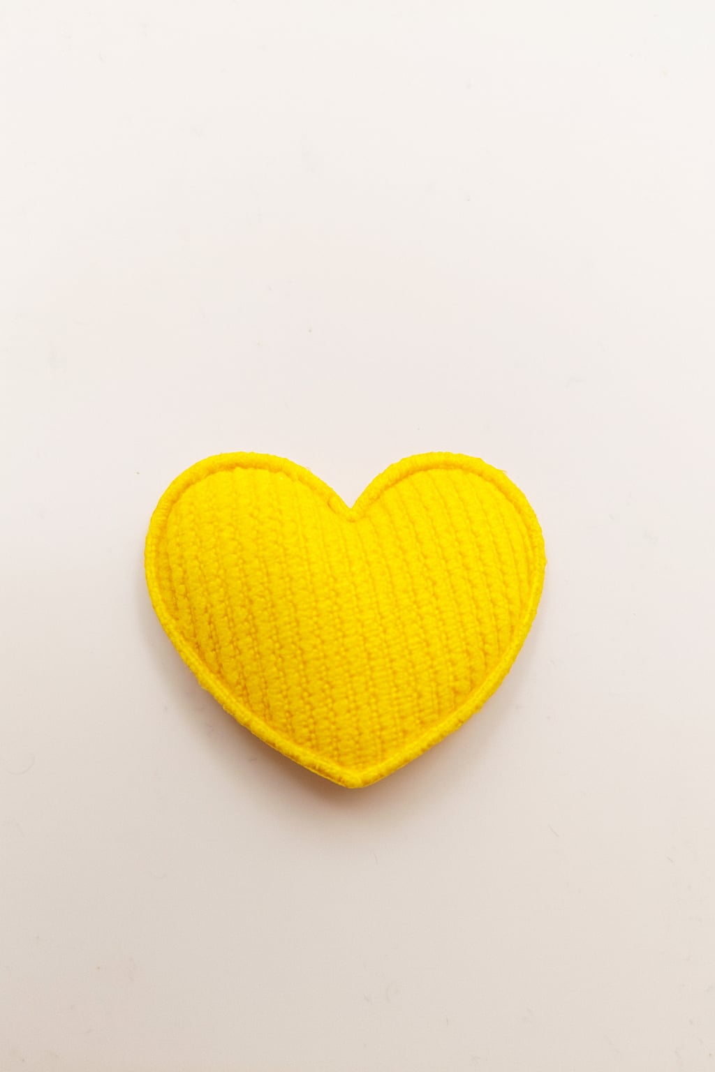 Aan de zicht zijde zit 1 stoffen hartje. Aan de onderzijde zit een 2,3 cm antislip Haarklemmetje.Deze klik je open , schuif je in de haren en vervolgens klik je hem dicht, Door het rubber laagje klemt hij zich stevig vast. De stof is vast gemaakt met textiel lijm deze kan goed tegen water en vocht.