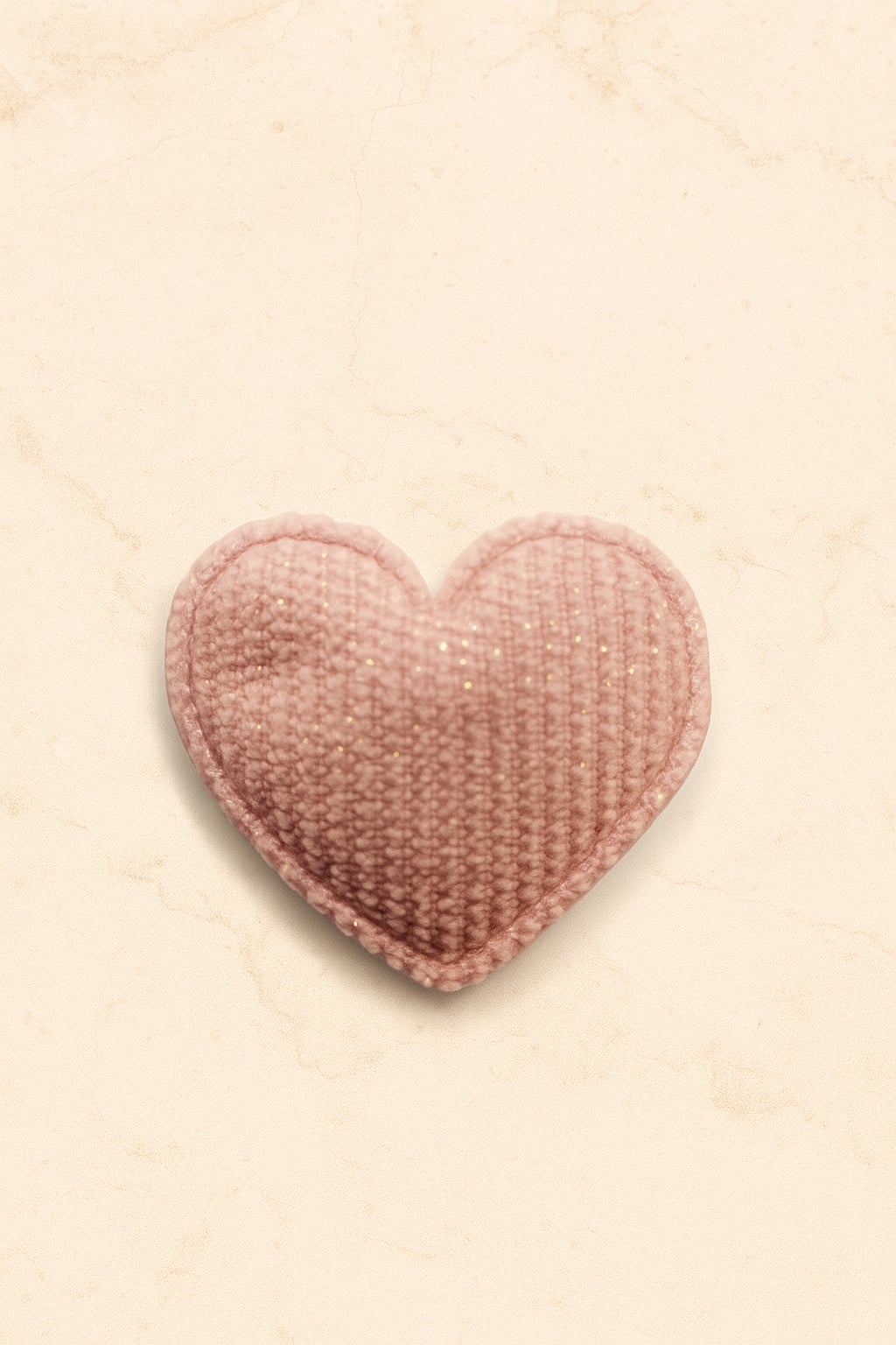 Aan de zicht zijde zit 1 stoffen hartje. Aan de onderzijde zit een 2,3 cm antislip Haarklemmetje.Deze klik je open , schuif je in de haren en vervolgens klik je hem dicht, Door het rubber laagje klemt hij zich stevig vast. De stof is vast gemaakt met textiel lijm deze kan goed tegen water en vocht.