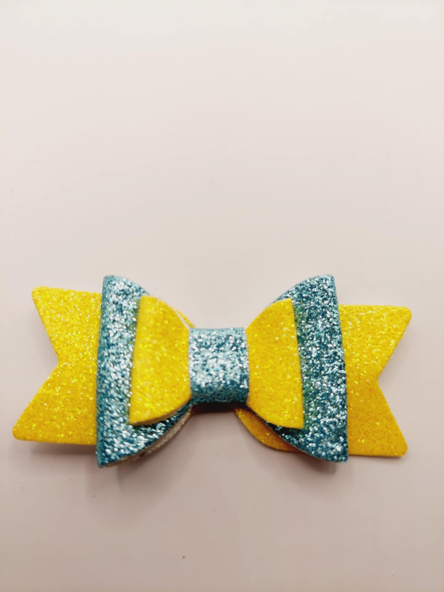 Aan de zicht zijde zitten 3 laagjes stof die een strik vormen Aan de onderzijde zit een 2,8 cm antislip Haarklemmetje.Deze klik je open , schuif je in de haren en vervolgens klik je hem dicht, Door het rubber laagje klemt hij zich stevig vast. De stof is vast gemaakt met textiel lijm deze kan goed tegen water en vocht.