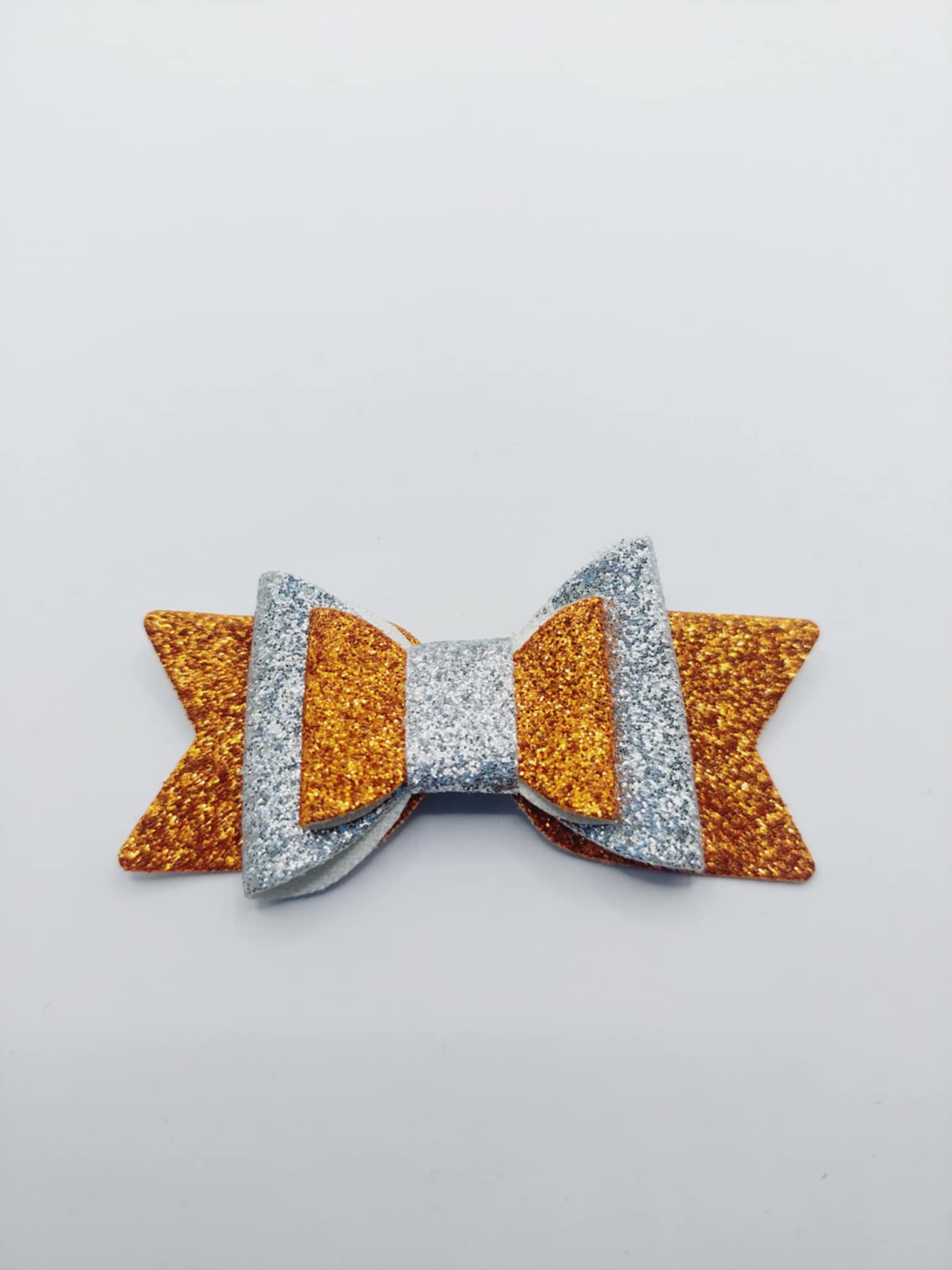 Aan de zicht zijde zitten 3 laagjes stof die een strik vormen Aan de onderzijde zit een 2,8 cm antislip Haarklemmetje.Deze klik je open , schuif je in de haren en vervolgens klik je hem dicht, Door het rubber laagje klemt hij zich stevig vast. De stof is vast gemaakt met textiel lijm deze kan goed tegen water en vocht.