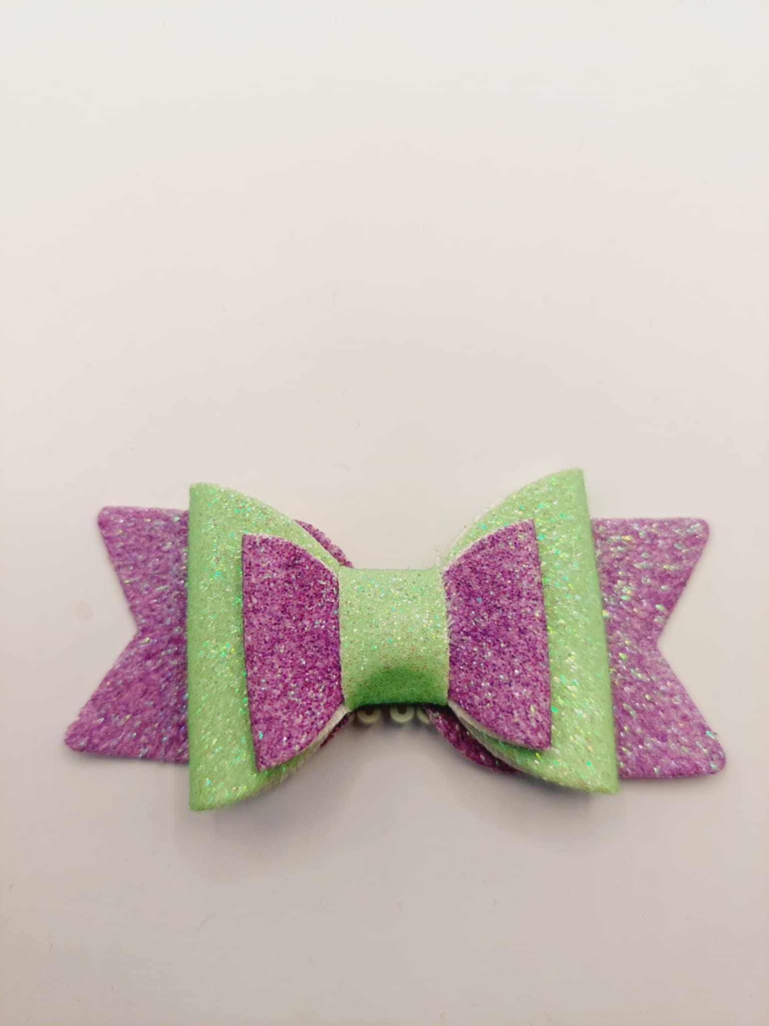 Aan de zicht zijde zitten 3 laagjes stof die een strik vormen Aan de onderzijde zit een 2,8 cm antislip Haarklemmetje.Deze klik je open , schuif je in de haren en vervolgens klik je hem dicht, Door het rubber laagje klemt hij zich stevig vast. De stof is vast gemaakt met textiel lijm deze kan goed tegen water en vocht.